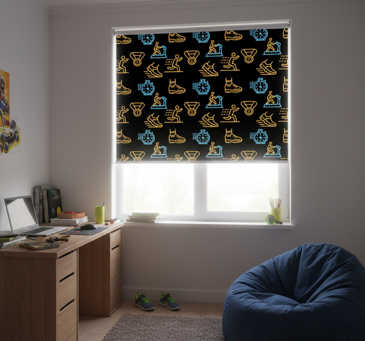 The Teenage bedroom roller blind with neon vector icons teenage bedroom roller blind is an inspiring choice for any young individual's space. It helps to create a fun and energetic environment that reflects their personality and interests. When this roller blind is installed, it instantly elevates the room's decor, creating a unique and dynamic ambiance that encourages creativity and self-expression. It’s not just a window covering; it’s an essential part of their room’s character!