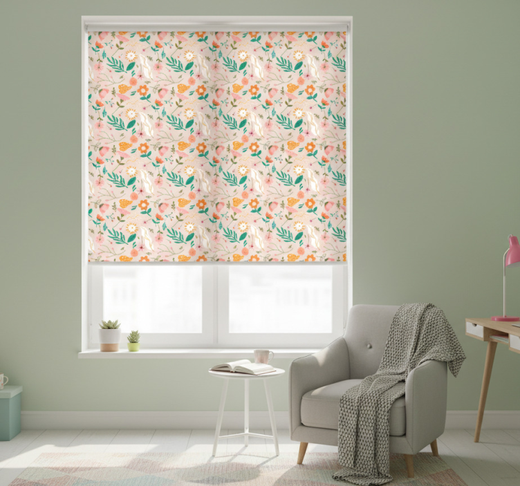 Teenage bedroom roller blind with pastel flower design