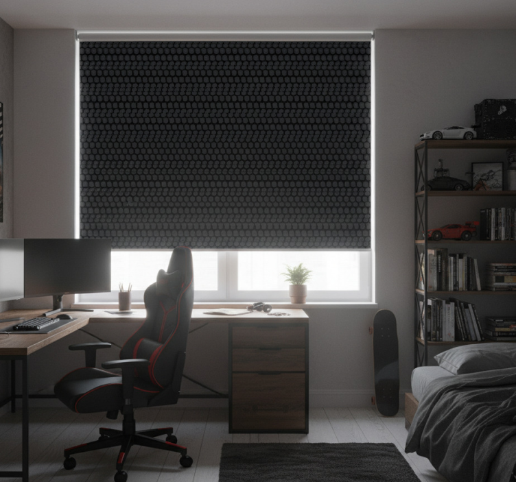 Teenage bedroom roller blind with tire pattern