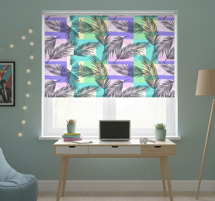 Reference: E7462Transform your space with our Teenage bedroom roller blind with tropical palm design, where vibrant tropical palm motifs dance across a backdrop of fresh colors. This stunning design effortlessly combines style and functionality, making it a perfect addition to any teenage bedroom. The roller blind not only enhances the aesthetic appeal but also offers essential features such as easy assembly in 2 clicks, easy cleaning, and disassembly, which allows for quick maintenance around windows.