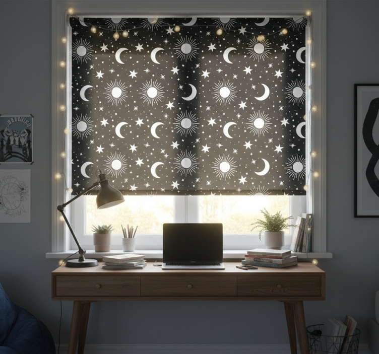 Our Teenage bedroom roller blind with white stars and moons teenage bedroom roller blind is the perfect decorative element to elevate any room. Imagine the joy of creating a tranquil haven where creativity flourishes! The captivating celestial design inspires imagination and provides a sense of calm, making it an essential addition to any teenager's personal space. With its stunning visuals, this roller blind adds a unique flair, turning ordinary windows into eye-catching focal points.