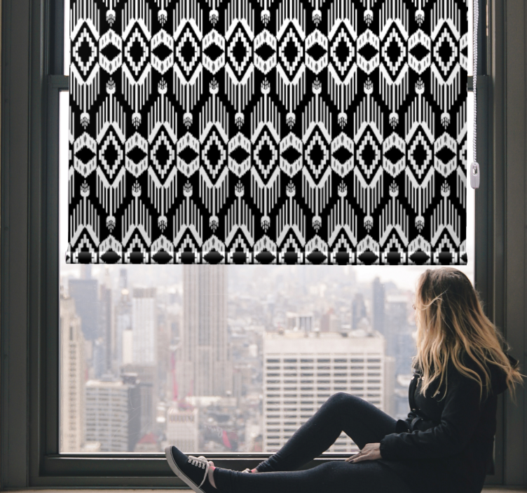 Introducing our stunning Texture and pattern roller blind geometric black design, a perfect blend of ethnic and rustic charm! This exquisite roller blind features intricate shapes and geometric patterns in a striking black and white color palette, elevating the aesthetic of any room while offering an eye-catching focal point. Transform your space with this unique design that marries style and functionality!