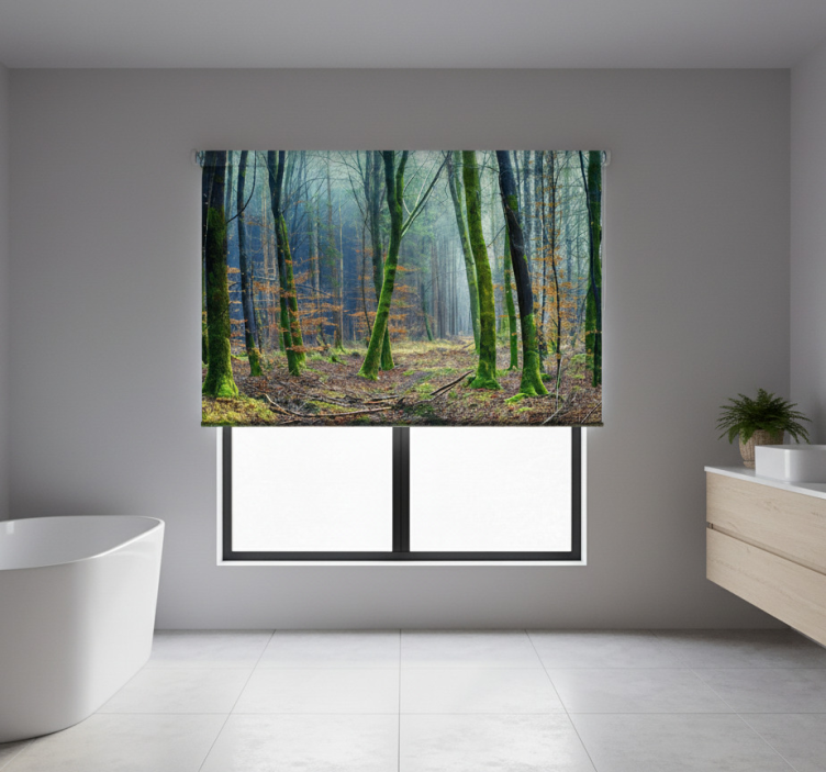 Tree roller blind foggy forest japandi