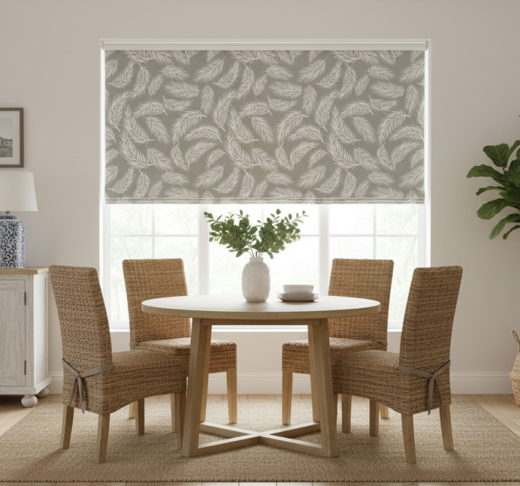 Reference: E6594Introducing our Tropical beige hamptons pattern dining room roller blind, a stunning addition to any dining space! This roller blind features a delightful tropical beige design that effortlessly combines elegance with a touch of nature. Its soothing colors and intricate patterns create a serene atmosphere, making it the perfect choice for those looking to enhance their home decor.