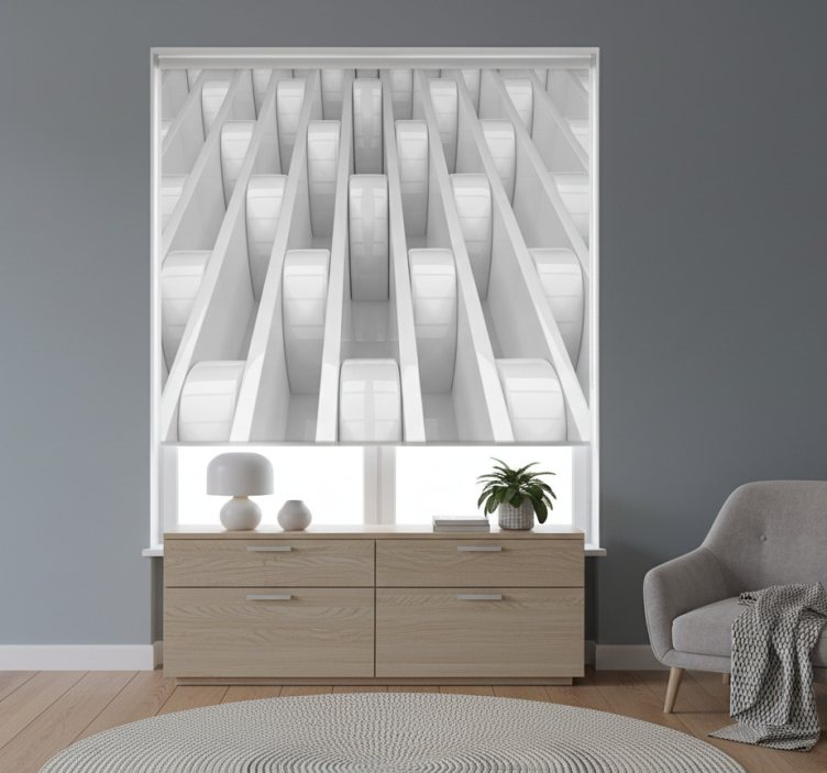 White roller blind with 3d geometric shapes design