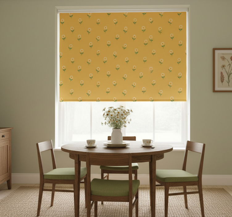 Reference: E8221Transform your child's space with our Yellow roller blind 1940s daisy nursery design, featuring a delightful daisy pattern that captures the essence of a playful nursery. This charming design combines vibrant yellow hues with whimsical floral motifs, creating a cheerful and inviting atmosphere. Our roller blind not only enhances the decor but also offers easy assembly and disassembly in just two clicks, making it a breeze to maintain cleanliness and freshness in your child’s room.