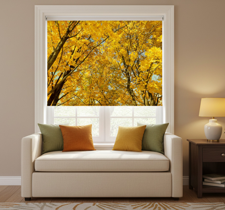 Yellow roller blind in yellow autumn leaves
