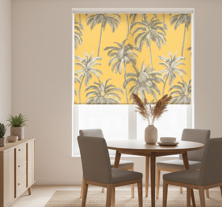 Yellow roller blind with palm trees design