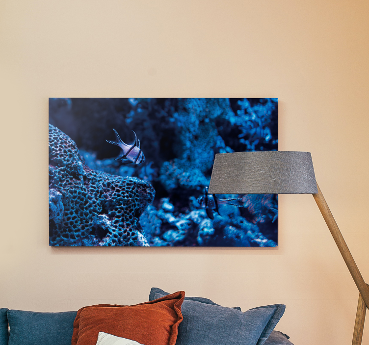 Experience the beauty of the ocean with our Nautical canvas art coral reef fish print. This stunning design features vibrant coral, a variety of fish, and a deep blue backdrop that brings marine life right into your space. Perfectly capturing the essence of underwater beauty, this print is not just a decoration but a window into a serene aquatic world!