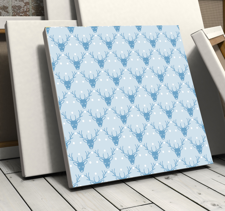 Introducing our stunning Stag canvas winter stag design, a captivating illustration that beautifully captures the essence of winter. The design features majestic deer and reindeers, their heads adorned in a mesmerizing pattern that evokes the spirit of Christmas. With a background of soft blue and delicate snowflakes, this piece of art is perfect for adding a festive touch to your home decor!