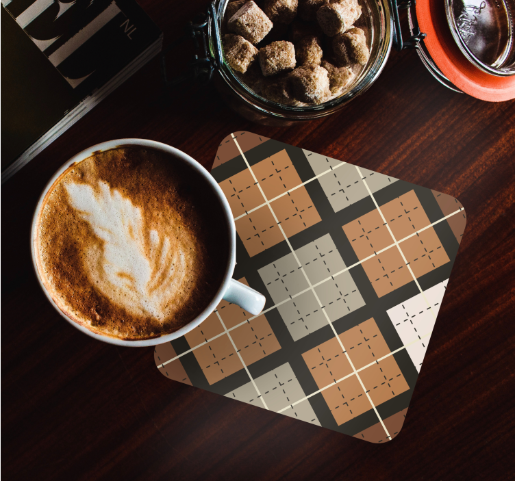 Introducing our stunning Coasters geometric pattern squares that feature a captivating design characterized by intricate diamonds, crossing shapes, and a beautiful blend of warm tones. The checkered pattern adds a unique flair, making them the perfect accent for any home. Crafted with eye-catching textures, these coasters bring a modern geometric touch to your living space, making everyday moments feel special!