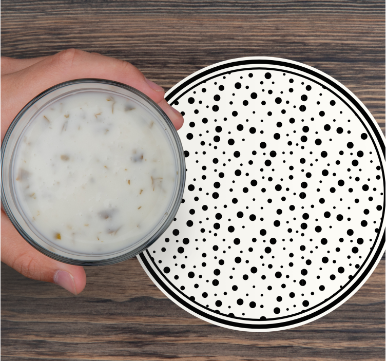 Experience the perfect blend of modern and minimalist design with our Coasters with black dot pattern. The abstract black dot pattern creates a visually striking geometric aesthetic that complements any decor. These polka dot coasters are not just functional but also serve as an eye-catching frame for your beverages, adding a touch of elegance to your coffee table or dining area.