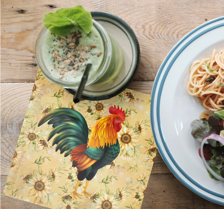 Introducing our Geek coasters colorful rooster illustration, a delightful addition to any home decor! This vibrant design showcases a charming rooster surrounded by sunflowers and floral patterns, perfectly capturing the essence of farm life. With its lively colors and animal theme, this coaster not only serves a practical purpose but also elevates your space with a touch of whimsy and warmth!