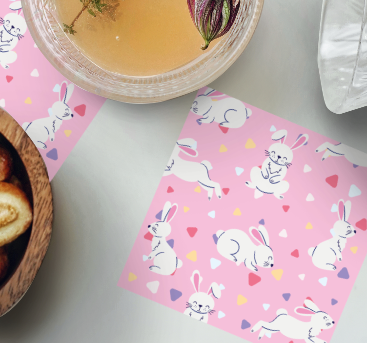 Personalisable coasters with playful bunny designs