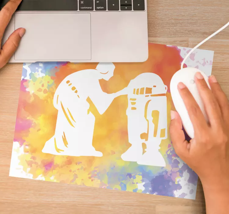 Introducing our Gaming mouse pad iconic robot engagement, a stunning representation of artistry that beautifully combines watercolour and illustration. This mouse pad features a vibrant colorful design with a captivating robot silhouette set against a mesmerizing space backdrop. The artistic touch makes it not just a functional item but a piece of art that elevates your gaming space, invoking a sense of scifi wonder that every gamer will appreciate!