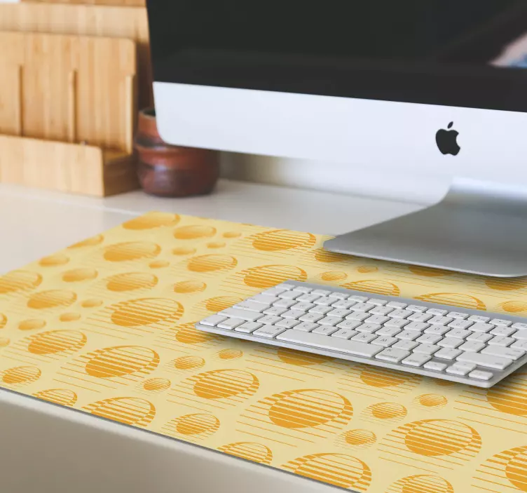 Introducing our stunning Mouse pad patterns circular texture design, featuring a captivating graphical style that harmoniously blends elements like the sun, abstract patterns, sunset hues, and geometric lines. The vibrant yellow tones draw you in, while the intricate drawing and illustration of circles create a mesmerizing texture that enhances any workspace. This unique design transforms an ordinary accessory into a piece of art, making it a perfect addition to your desk!