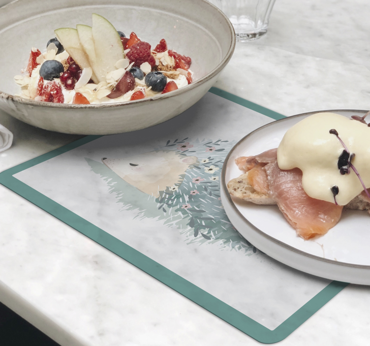 Introducing a delightful addition to your child's dining experience, our Children placemats cute hedgehog illustration showcases a whimsical design featuring a charming hedgehog amidst a nature-inspired backdrop. The playful porcupine and vivid flora are rendered in beautiful watercolor, bringing a touch of the outdoors into your home. This enchanting piece transforms mealtime into a magical adventure, where every bite is accompanied by joy and imagination!