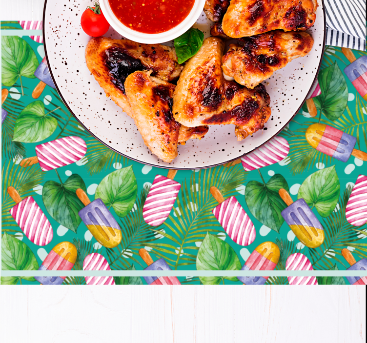 Cartoon placemat with leaves and ice cream.Buy now at a discount!