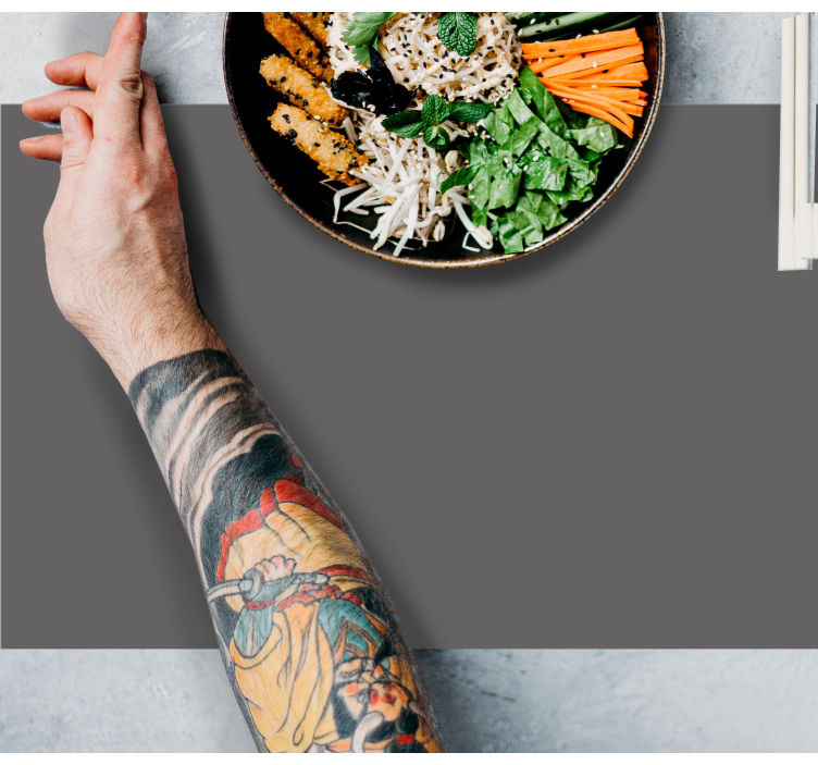 Introducing our stunning Placemat for food bowl layout, designed to elevate your dining experience! This placemat features a beautiful grey color, which complements any décor while providing a sleek, monocolor aesthetic. The intricate tattoo-like hand texture adds a unique touch, making it perfect for serving everything from vegetables to noodles. With its visually appealing design, this placemat is not just practical; it enhances your table setting!