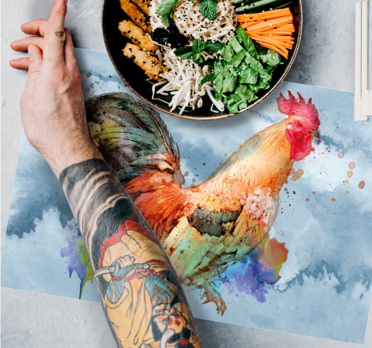 and make your meals unique in just a few easy steps! This design features a beautifully hand-painted rooster over a mesmerizing blue watercolor background. Use this practical product to decorate your tables and protect them from damages at the same time. All of ourtextured vinyl place mats