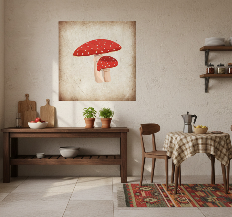 Reference: G610Discover the beauty of our Kitchen poster amanita mushroom illustration, a stunning visual feast for your kitchen space! This poster features a vibrant design with high colour intensity, crafted on a durable 180g/m2 material, ensuring longevity. The semi-matt finish adds an elegant touch, free from reflections that could distract from its striking artwork. Transform your kitchen into a whimsical haven filled with nature's charm!