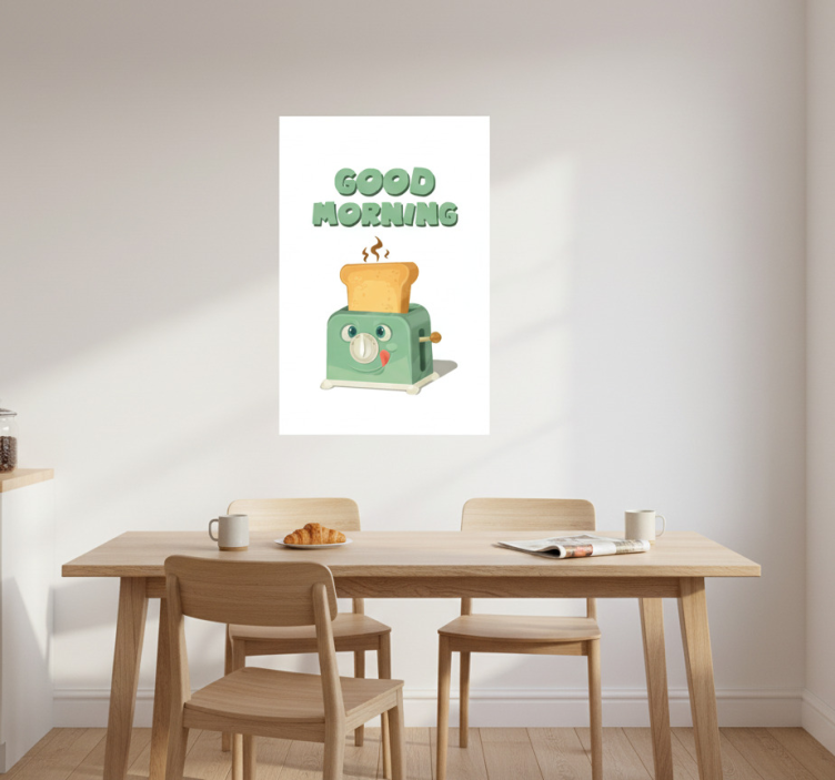 The Kitchen poster good morning with toaster kitchen poster is more than just a decorative piece; it is a daily reminder to start your day with joy and positivity! Imagine walking into your kitchen and being greeted by a bright, inviting scene that inspires creativity and warmth. This poster serves as a motivational touch that transforms your space into a cozy haven, bringing a smile to your face with every glance.