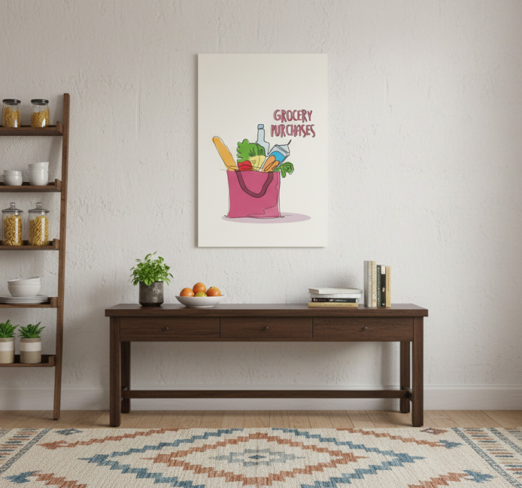 To beautifully display the Kitchen poster with grocery illustration kitchen poster art, consider using double-sided adhesive tape for a sleek look. Simply attach strips to the back of the poster and hold each firmly for 10 seconds. Alternatively, framing it provides an elegant touch. For a casual approach, use thumbtacks or reusable blu-tack to easily hang it wherever you desire!