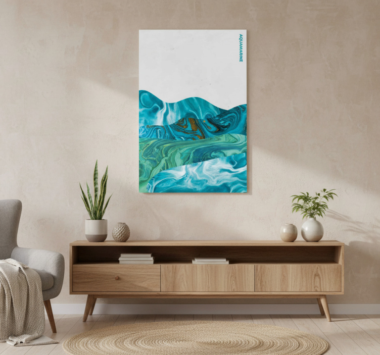 The Living room poster aquamarine curve lines living room poster brings a sense of tranquility and style to any interior. Its soothing colors and fluid design inspire relaxation and creativity, making it the perfect centerpiece for your decor. Imagine your guests admiring the beauty of this art piece as it adds a touch of elegance and sophistication to your living area!
