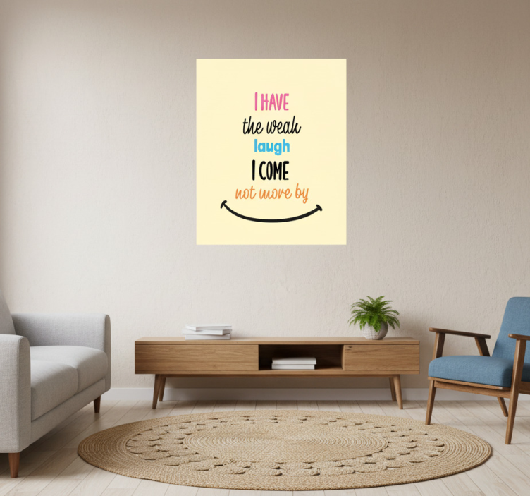 The Living room poster i have a weak laugh living room poster is more than just a decoration; it's a conversation starter! This delightful piece encourages laughter and joy, making it perfect for any gathering. Imagine your friends and family admiring its quirky charm and sharing a laugh together! It adds warmth and character to your space, inspiring a lively and welcoming environment.