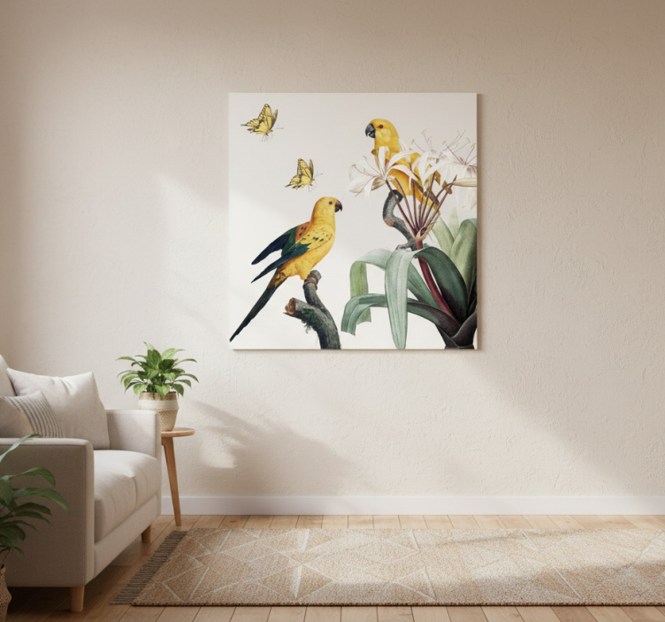 Transform your living space with our living room poster of parrots with yellow flowers living room poster, designed to inspire and uplift! This delightful piece not only adds a touch of nature's beauty to your home but also sparks joy and creativity. Imagine the vibrant colors and enchanting scenes that bring your walls to life and elevate your mood every day. It’s more than just decor; it’s a statement of your unique style!