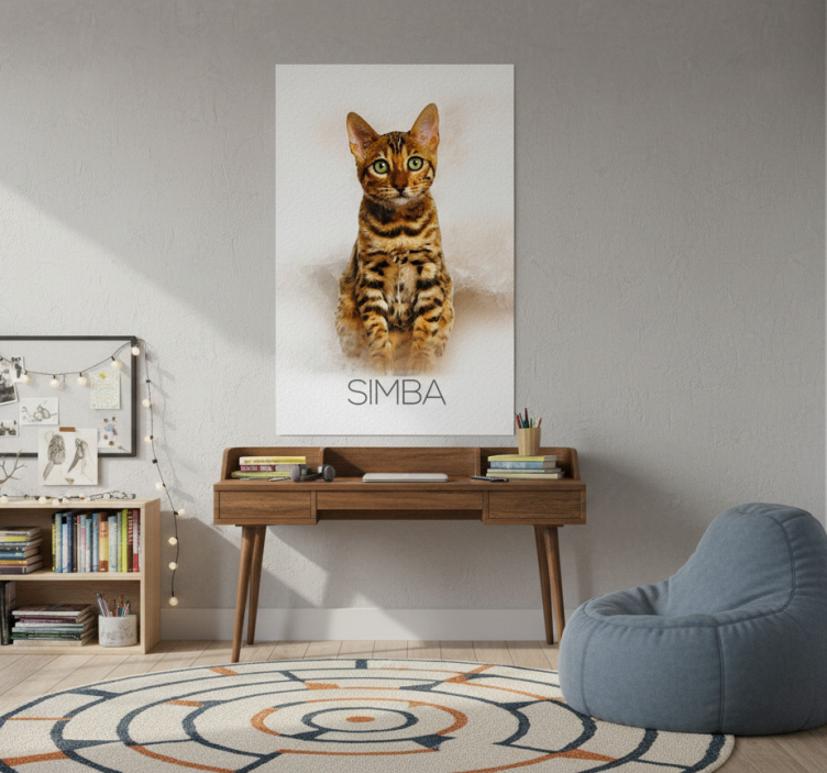Reference: G763Transform your living space with our stunning Living room poster pet portrait artwork! This design features a semi-matt finish that eliminates reflections, showcasing high colour intensity to bring your beloved pet to life in vibrant detail. Crafted on 180g/m2 grammage paper, this artwork is perfect for adding a personal touch to your home decor.