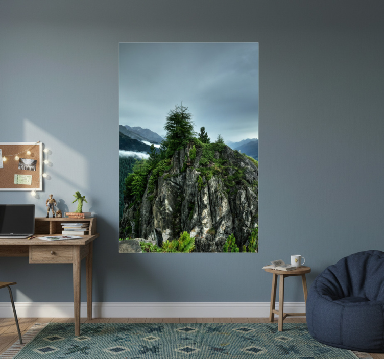 To showcase your Living room poster single rock in green forest wall posters for living room, we recommend using double-sided adhesive tape for a clean and easy application. Simply stick the tape to the back of the poster and hold it in place for 10 seconds. Alternatively, consider framing the poster for a more polished look, or use thumbtacks and reusable blu-tack for a versatile display. Enjoy decorating with ease!