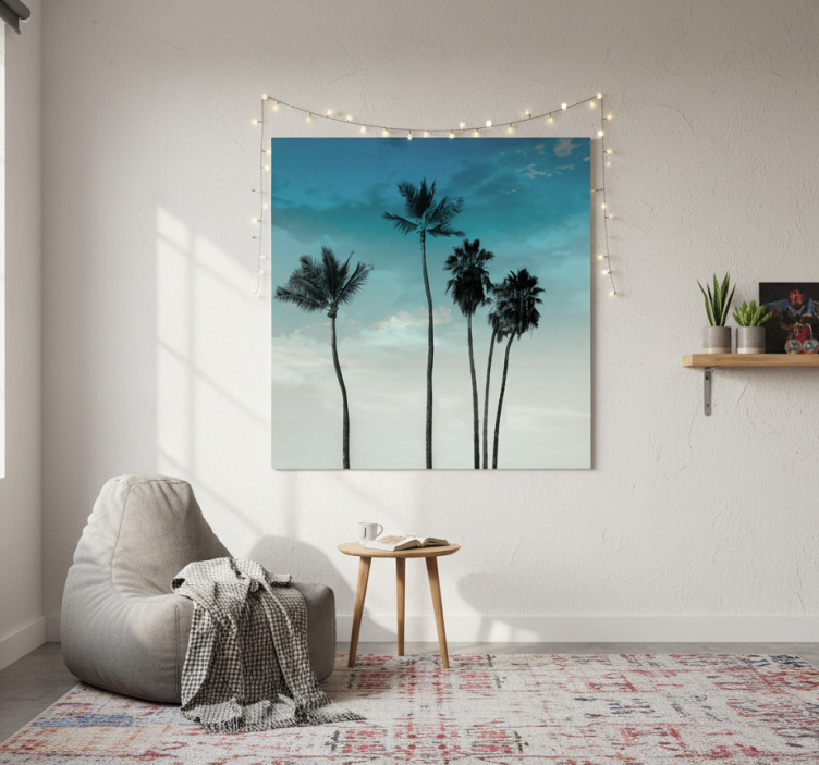 Elevate your interior with the Living room poster with five tall palm trees design living room poster. This artwork inspires tranquility and joy, inviting a touch of nature into your home. Imagine coming home to this beautiful scene every day; it’s not just decoration, it’s an experience that uplifts your spirit!