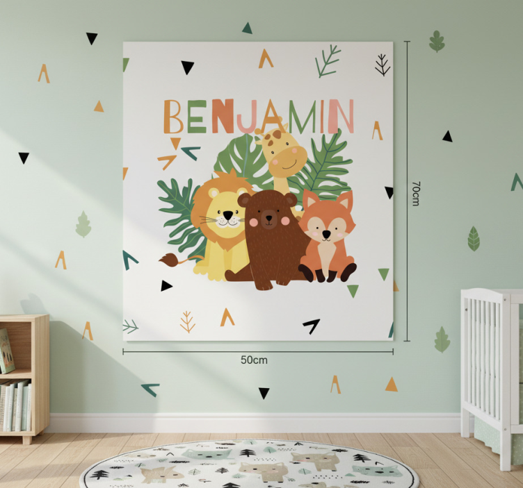 Reference: G899Introducing our delightful Nursery poster featuring adorable wild animals and leaves, a charming addition to any child’s space! This enchanting design showcases vibrant colors and playful motifs that celebrate the beauty of nature. With a semi-matt finish that minimizes reflections and a grammage of 180g/m2, this children wall poster offers high color intensity, making it a stunning focal point in any nursery.