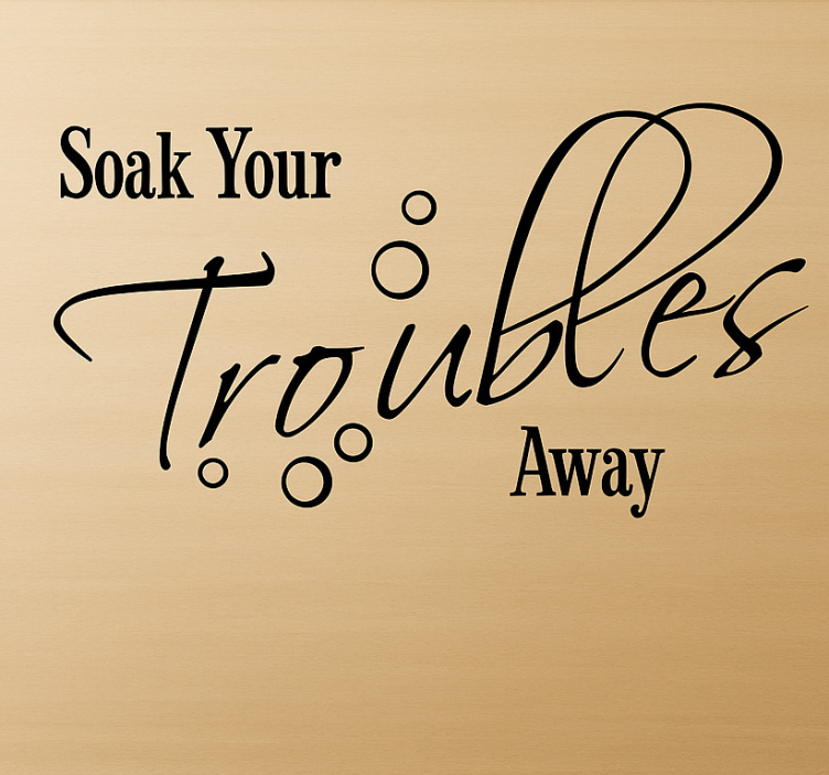 Reference: A54844Transform your bathroom into a serene haven with our Bathroom wall sticker soak all your troubles. This exquisite design features calming colors and whimsical typography, perfect for adding a touch of elegance and inspiration to your space. The high-quality satin finish ensures a vibrant look without reflections, while the durable vinyl promises long-lasting beauty.