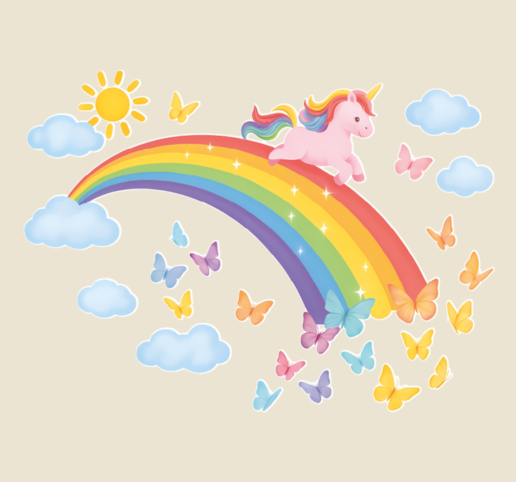 Reference: A54310Transform your child's room into a vibrant wonderland with our Beautiful rainbow childrens' wall stickers. These stunning vinyl stickers feature delightful rainbow designs, enchanting clouds, and whimsical stars, creating an inviting atmosphere that sparks imagination and joy. Perfect for brightening up any space, these wall stickers are easy to apply and clean, ensuring a long-lasting and colorful display!