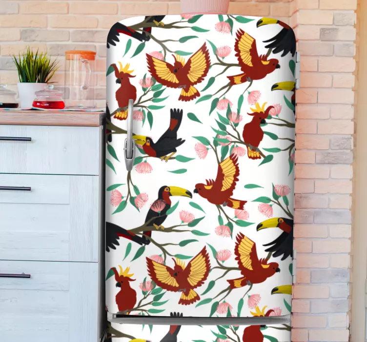 Transform your space with our Bird wall sticker tropical bird designs, featuring enchanting graphics that bring the beauty of nature indoors. This vibrant design showcases a delightful pattern of colorful parrots and toucans amidst a whimsical floral backdrop. Perfect for adding a touch of the tropics to any room, these stickers radiate joy and liveliness!