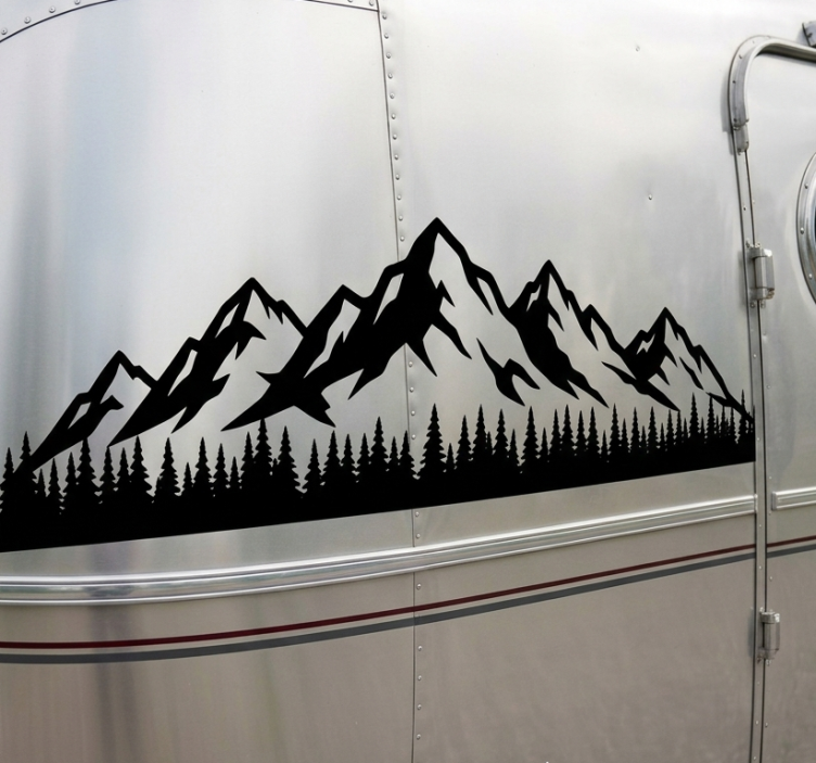 Reference: A54710Discover the Campervan decal adventurous mountain design, a stunning graphic representation that encapsulates the spirit of exploration! This design features majestic mountains that rise against a backdrop of a starry night sky, with silhouettes of trees that evoke a sense of freedom and adventure. The colorful palette brings life to any space, making it a perfect addition for those who cherish the great outdoors and the joy of road trips!