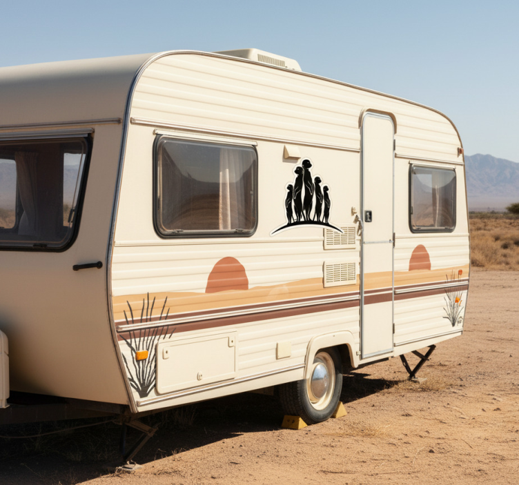 Campervan decal curious meerkat family