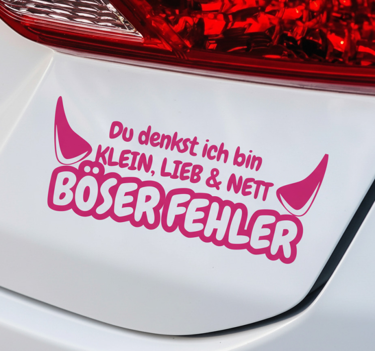 Reference: A53262Introducing the Car sticker bad mistake pink devil, a striking design that captures attention with its vibrant pink hues, playful devil imagery, and bold typography. This eye-catching sticker is perfect for those who love to make a statement, adding a touch of humor and personality to any vehicle. Whether you're looking to express your unique style or simply want to bring a smile to others, this car sticker is the right choice!