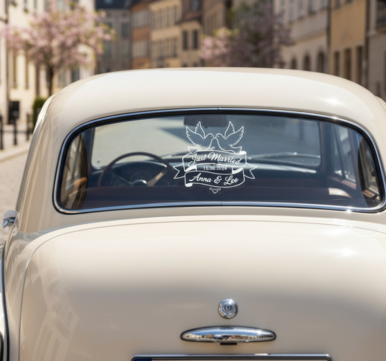 Reference: A54697Introducing our stunning Car sticker just married love doves design, a perfect blend of elegance and charm! This delightful design features two beautiful love doves, symbolizing unity and affection, intricately intertwined with a heart, creating a romantic atmosphere for any newlywed couple. The vibrant colors and smooth satin finish ensure that this car sticker stands out, making your special day even more memorable!