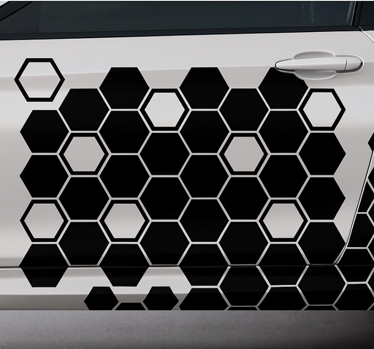 Reference: A53940Introducing our stunning car sticker with hexagonal honeycomb pattern! This unique design showcases a beautiful hexagonal honeycomb pattern that brings a modern touch to your vehicle. The intricate detailing and vibrant colors create an eye-catching visual that is sure to turn heads wherever you go. Perfect for anyone looking to express their style, this car sticker is made with high-quality materials that ensure durability and long-lasting enjoyment.