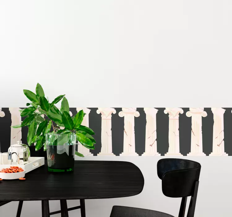 Transform your living space with our stunning Classic column design wall border sticker. This exquisite design features an antique Greek aesthetic, showcasing elegant columns set against a rich black background that mimics the beauty of marble. Perfect for those who appreciate a touch of traditional style, this wall border adds a sophisticated flair to any interior setting.