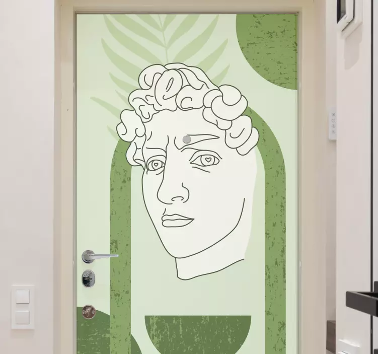 Transform your space with our Contemporary face artwork door sticker, featuring a stunning design inspired by the iconic David statue. This exquisite adhesive showcases minimalist line art in modern design, highlighted by green tones and abstract shapes. It's the perfect way to add a touch of sophistication to any door!