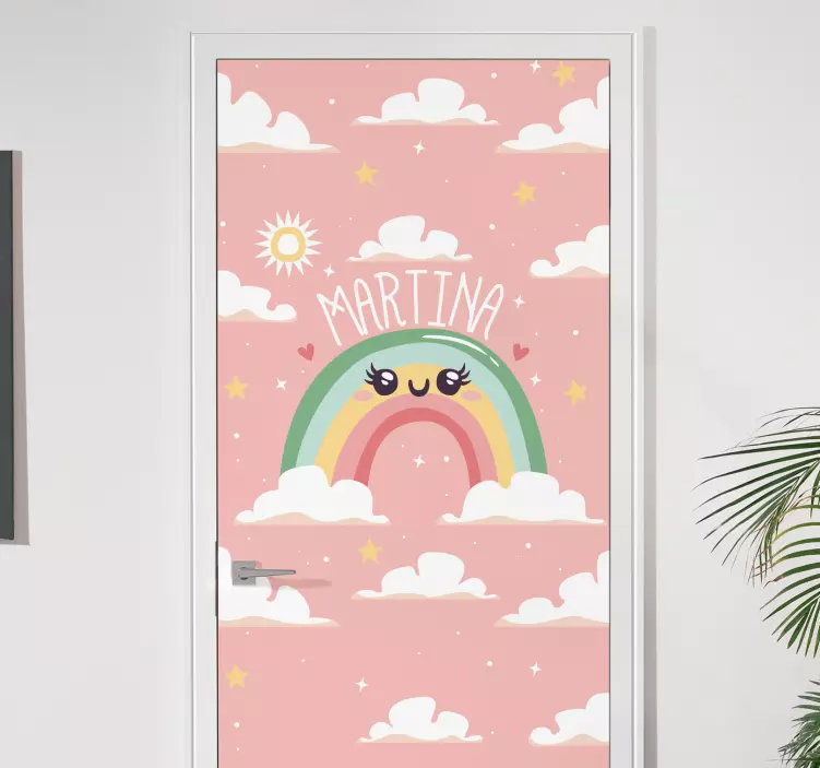 Transform your space with our Custom rainbow design door sticker, a delightful blend of vibrant colors and playful graphics! Featuring a whimsical design that includes clouds, a rainbow, and a bright sun, this personalized sticker can also incorporate your name for that extra special touch. It's cute, fun, and perfect for adding a splash of joy to any door!