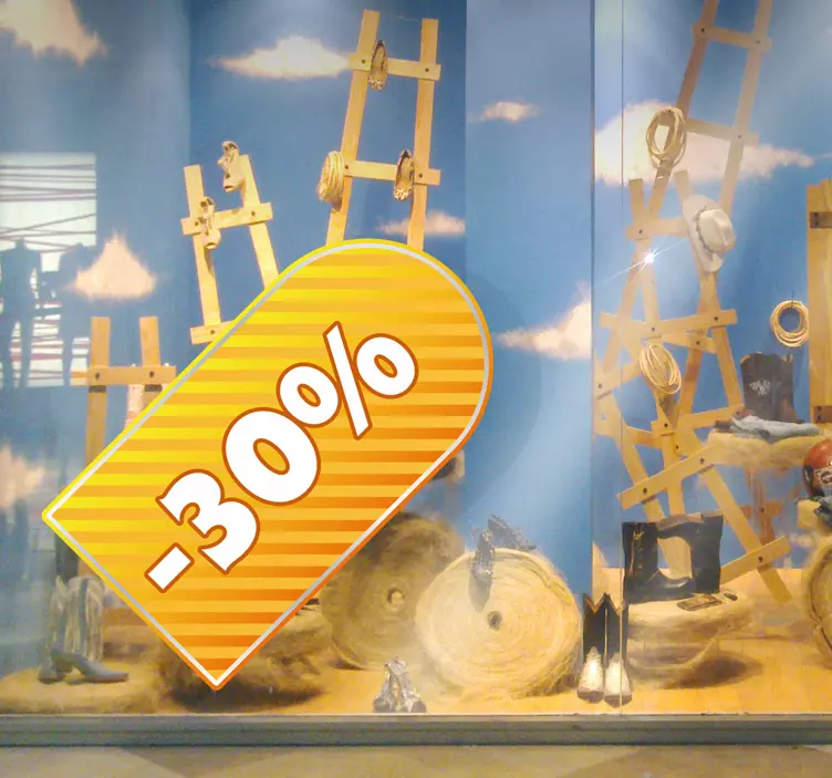 Customisable Decorative sticker of stripped yellow label for your shop front window. Perfect to decal to decorate your own shop! Make your shop look original and turn strangers into customers! This wall sticker will attract many people due to its bright and warm colour. Available in different sizes. Easy to apply.