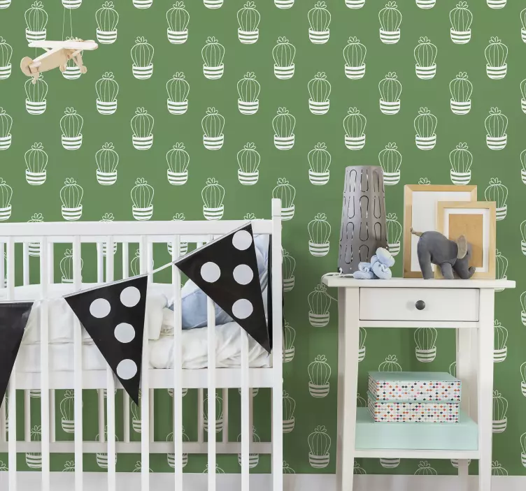 Reference: A50218A charming pattern featuring stylized cactus designs in a repeating layout. Ideal for creating a whimsical atmosphere in a nursery or child's room. The design brings a playful touch and complements a variety of interior styles, making any space feel inviting and cheerful.