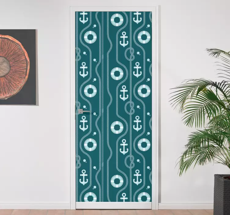 Transform your space with our Door sticker anchor motif design, featuring a stunning nautical theme that draws inspiration from the ocean. This decorative sticker showcases intricate illustrations of anchors, waves, and a circular pattern that brings marine charm right to your door. Perfect for adding a touch of whimsy and personality, this graphic design effortlessly enhances any environment!