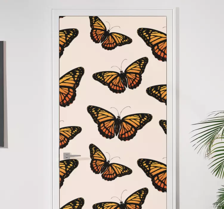 Transform your space with our Door sticker colorful butterfly illustration! This exquisite design features a delightful array of monarch butterflies in vibrant orange hues, bringing a touch of nature's beauty right to your door. Perfect for adding a decorative flair, this adhesive art captivates the essence of joy and creativity, making every entrance feel inviting and alive.