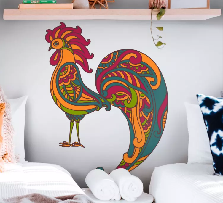 Introducing our vibrant Farm animal wall sticker colorful rooster design, featuring an ornate silhouette of a rooster that captures the essence of farm life. This decorative piece showcases a stunning blend of ethnical influences, making it a perfect addition to any space. The rooster's colorful design brings a cheerful touch to your walls, evoking the spirit of the countryside and adding a lively atmosphere to your home.
